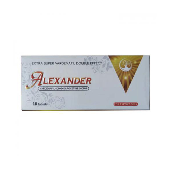 Alexander(亚历山大双效片)主要成分是:Verdenafil与Dapoxetine配置而成。每粒含量是140mg,其中Verdenafil含量是40mg,而Dapoxetine含量是100mg。伐地那非(Verdenafil)功效:增硬助勃;达泊西汀(Dapoxetine)功效:超强延时。